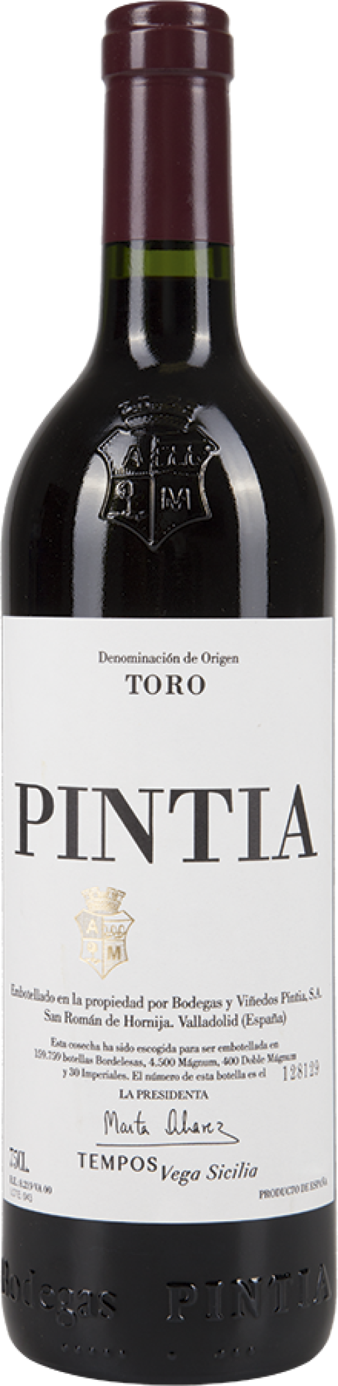 Pintia is het gedurfde wijnproject van de Álvarez-familie, opgericht in 2001 als uitbreiding van Vega Sicilia in de D.O. Toro, ca. 100 km stroomafwaarts van Ribera del Duero. Gevestigd langs de oevers van de rivier de Duero, groeien de Tinta de Toro-stokken op ruim 700 m hoogte in terroirs met mineraalrijke kiezel- en zandbodems. De wijngaarden zijn 35–40 jaar oud en leveren lage rendementen op (±24 hl/ha), wat bijdraagt aan hun concentratie en finesse. De druiven worden met de hand geplukt in 12 kg kratjes en ondergaan koude maceratie voorafgaand aan fermentatie dit om de fruitexpressie maximaal te behouden. Fermentatie vindt plaats in houten en stalen vaten met inheemse gisten, gevolgd door rijping in 70–80 % nieuw Frans eiken en een kleine hoeveelheid Amerikaans eiken voor helderheid en balans. Pintia wordt beschouwd als de eigenzinnige, moderne interpretatie van het Vega Sicilia-handschrift: robuust doch elegant, intens maar verfijnd. Critici beschrijven het als krachtig, complex en spannend een nieuwe generatie Toro-aanpak met internationale allure en gevoel voor detail.