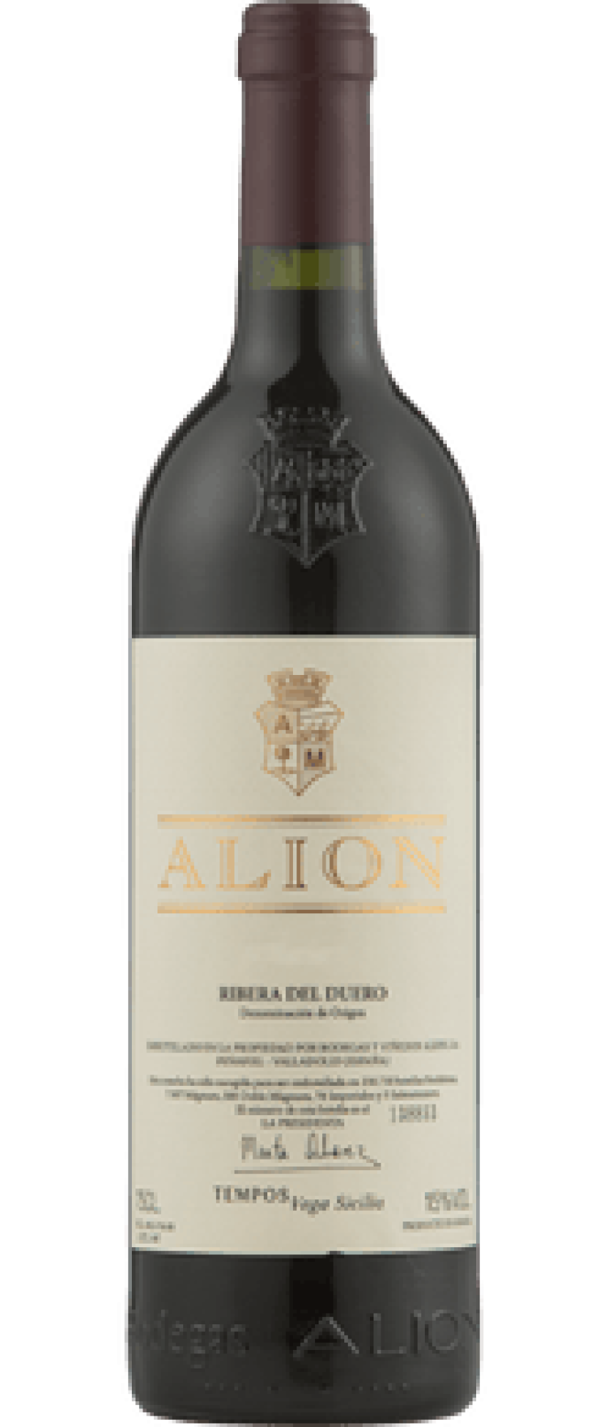 Alión is de jongste telg binnen de familie van Vega Sicilia opgericht met de eerste oogst in 1991 als een eigen creatie naast de iconische Unico. Het doel was een moderne interpretatie van Tinto Fino (Tempranillo), nauw verwant aan Bordeauxstijl, maar met zuiverheid van Ribera del Duero. Gevestigd op 15 km van het hoofdterroir van Vega Sicilia, combineert de wijngaard eigenschappen van zand, kiezel en klei op hoogtes rond de 750 m voor een uitermate uitgebalanceerde rijping. De gemiddelde stokken zijn ruim 40 jaar oud en leiden tot lage opbrengsten (±23 hl/ha), wat zorgt voor intensiteit en finesse. Elke vintage wordt gevinifieerd met zorg: handgeplukte druiven worden gefermenteerd in eiken tanks, gevolgd door 12–14 maanden opvoeding op 100 % nieuw Frans eiken (met een kleine toevoeging van Amerikaans eiken), waarna hij minimaal 15 maanden op fles rijpt. Het resultaat is een wijn die kracht en diepgang levert, maar altijd elegant en evenwichtig blijft – intens rood fruit, viooltjes, specerijen en subtiele eik met een minerale ondertoon.