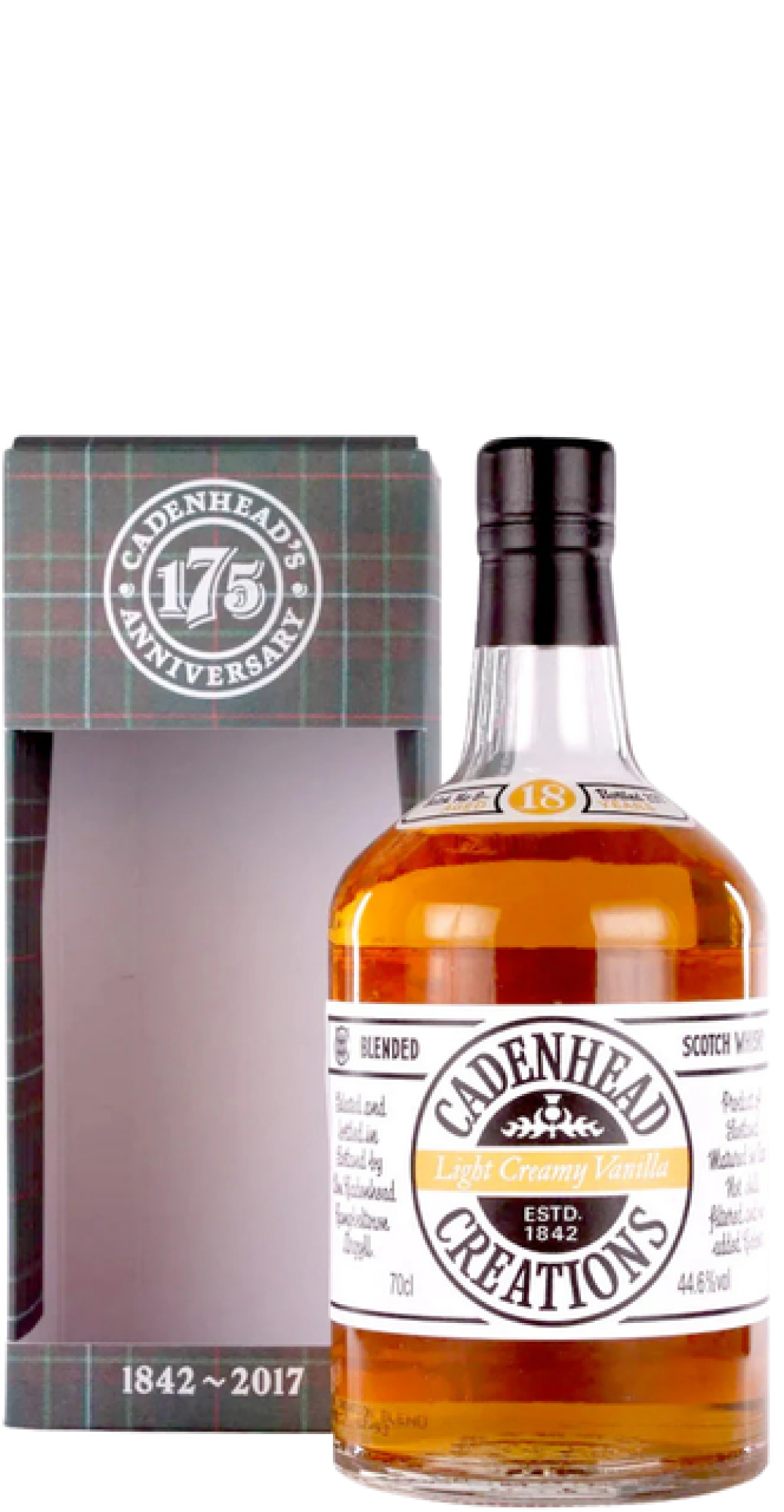 De Cadenhead Creations 18 Years Old (1998–2017) is een exclusieve blended malt whisky samengesteld uit zorgvuldig geselecteerde single malts, allemaal gedistilleerd in 1998 en vervolgens minimaal 18 jaar gerijpt in eikenhouten vaten. Deze botteling maakt deel uit van Cadenhead’s “Creations”-serie, waarin het blenden van oudere whisky’s haast tot een kunst wordt verheven. De gebruikte whisky’s zijn afkomstig van gerenommeerde distilleerderijen (vaak anoniem, soms inclusief Highland, Speyside en Islay malts), met rijping onder controle van het Cadenhead team in Campbeltown. In de geur en smaak levert dit een complexe whisky op met tonen van gedroogd fruit, kruiden, bijenwas, subtiele rook en houttonen, zonder dominant distilleerderijkarakter.